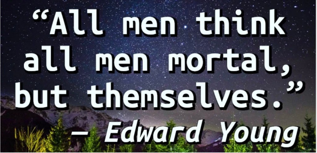 I’ve heard the expression, if you name it, you claim it, and I believe that’s why people don’t like to think about mortality. While I’d like to live until 100 (in a strong, healthy body), the possibility is tiny.